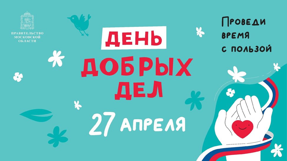 27 АПРЕЛЯ в Московской области пройдет масштабная акция «День добрых дел». С одной стороны, это что-то вроде субботника со всякими интересными активностями, с другой - в какой-то степени и подготовка к празднованию Дня Победы. К слову, родителям участвовать в этих мероприятиях тоже никто не запрещает. И даже наоборот - если папы и мамы присоединятся к акции, это только всячески приветствуется.