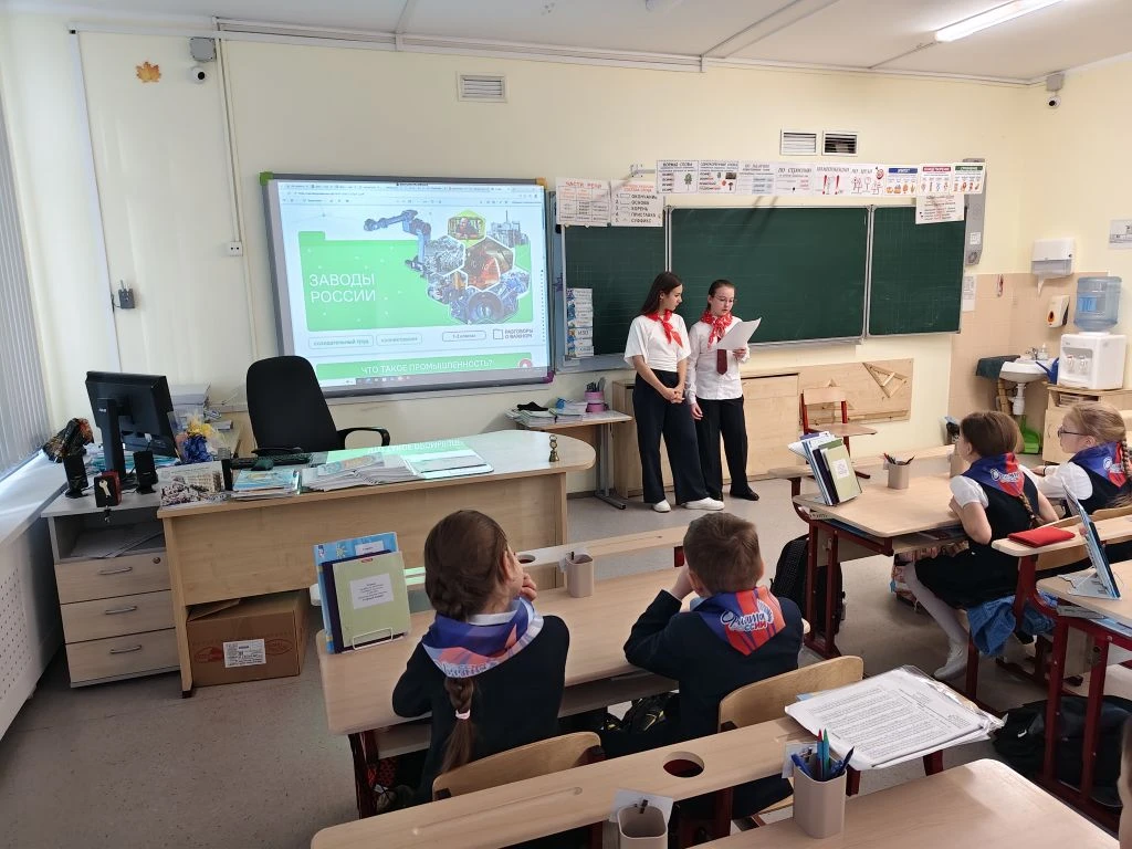 Наставники Орлят России рассказали учащимся начальной школы о развитии отечественной промышленности, о том, как создаются современные производства и какие специалисты работают на предприятиях. Особое внимание уделили людям труда — инженерам, технологам и конструкторам, благодаря которым развивается промышленный потенциал страны.